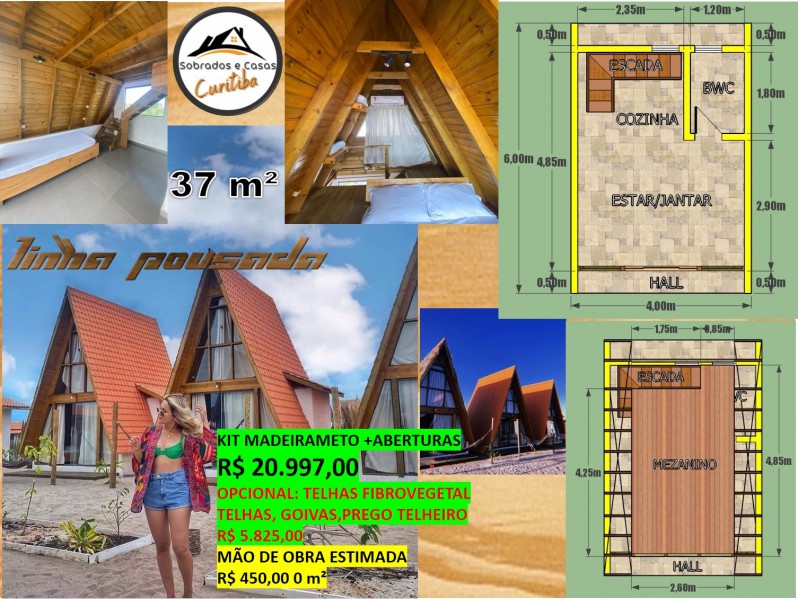 KIT MADEIRAMENTO CHALÉ LINHA POUSADA 37,00 m²