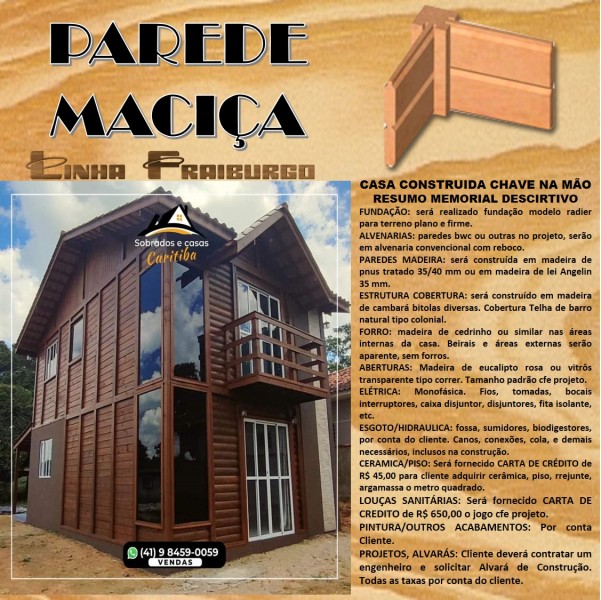 SOBRADO LINHA LINHA FRAIBURGO 90 M² MADEIRA MACIÇA CONSTRUIDO CHAVE NA MÃO PREPARADO PARA RECEBER PINTURA E VIDROS.