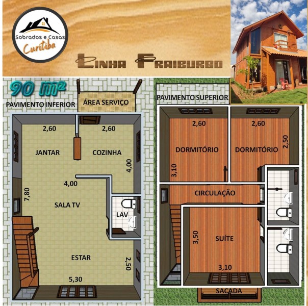 LINHA FRAIBURGO SOBRADOS MADEIRA MACIÇA | LINHA FRAIBURO 90 m² CONSTRUIDO