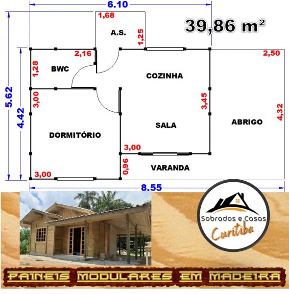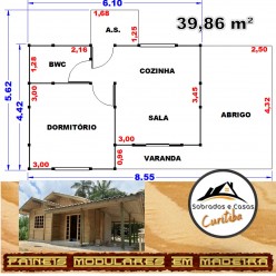 PAINÉIS MODULARES EM MADEIRA(CASAS, KITNETES E CHALÉS) | PAINÉIS MODULARES LINHA BLUMENAU 39,86 m²(CONSTRUÍDO)