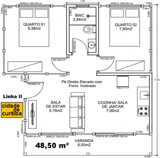 PAINÉIS MODULARES EM MADEIRA(CASAS, KITNETES E CHALÉS) | PAINÉIS MODULARES CURITIBA II TÉRREA 48,50 m²(CONSTRUÍDO)